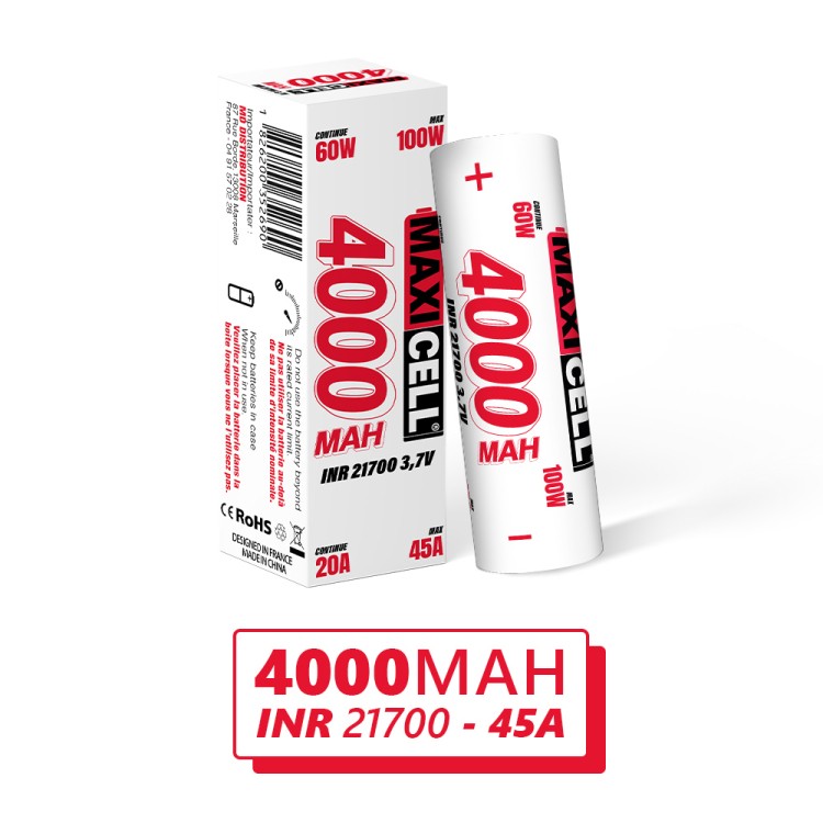 Cet accu 21700 de la marque X Power possède une capacité de 4000 mAh, cet accu peut se vanter d'avoir un courant de décharge continu de 20 A et un courant de décharge maximum de 45A .